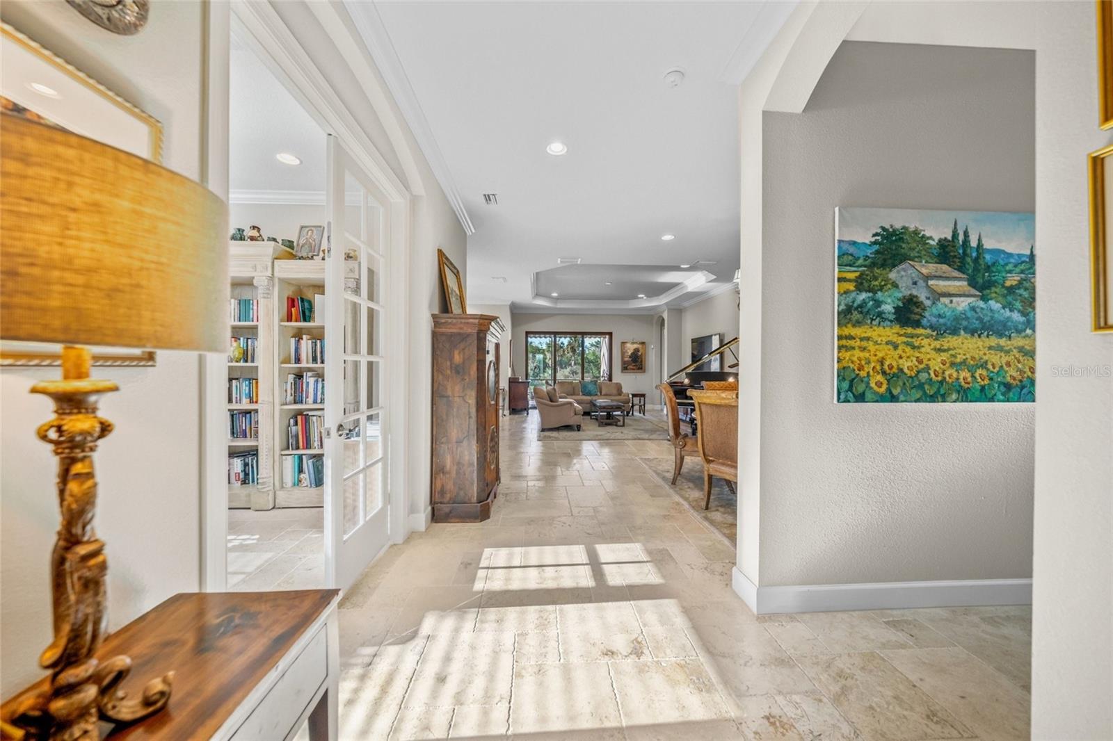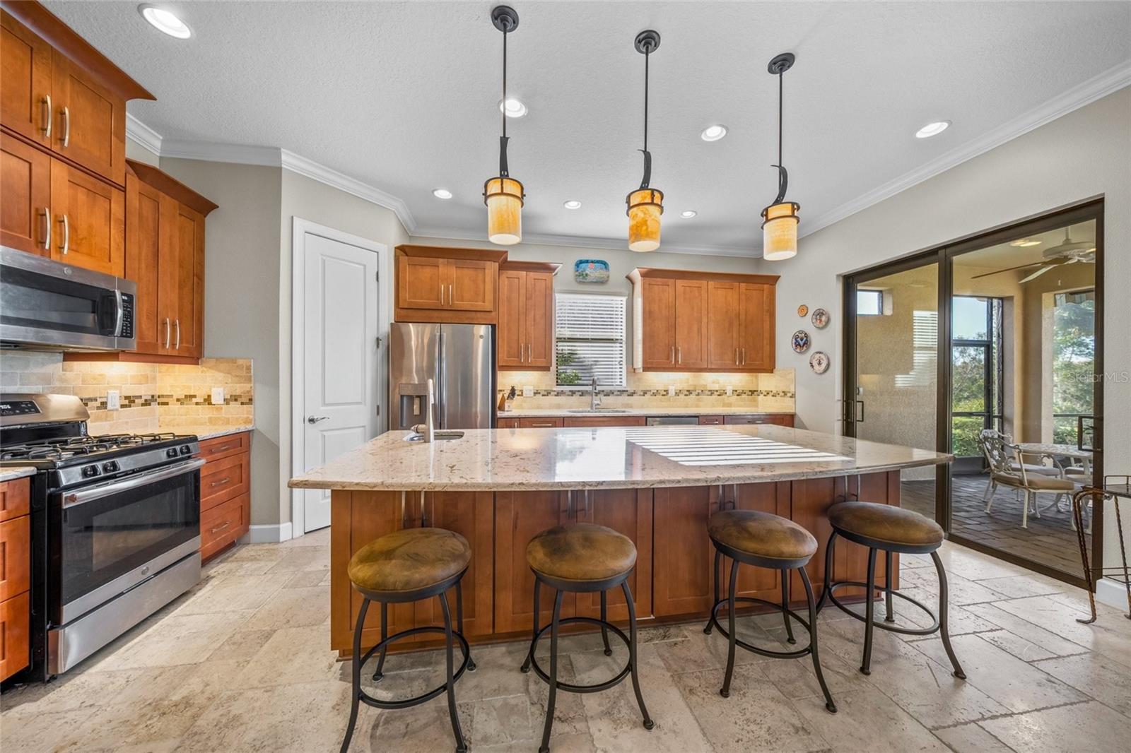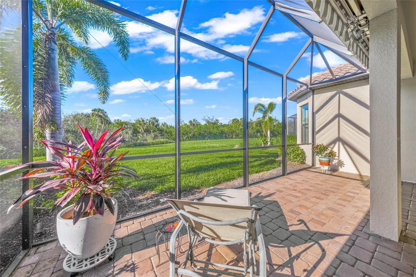 Experience the ideal blend of comfort and elegance in this well-maintained residence in the sought-after gated Cobblestone on Palmer Ranch. For peace of mind, hurricane impact-rated doors, windows and sliders. Move-in ready, this home offers a carefree lifestyle surrounded by natural beauty. Taylor Morrison Lazio floor plan with many upgrades and finishes. Travertine flooring, 8-foot doorways, tray ceilings with crown molding, extended garage and rough-in for a summer kitchen. Retractable awnings are a practical feature overlooking a wide greenbelt and preserve, it provides a tranquil retreat from the hustle and bustle. The yard is maintenance free including mow, trim, mulch and irrigation water. This spacious home with chef's kitchen equipped with quartz countertops and stainless-steel appliances, complemented by abundant cabinetry and a cozy eat-in kitchen area. The owner's suite is a sanctuary, boasting a large outfitted walk-in closet and a luxurious bath with dual sinks, a walk-in shower and a separate toilet for added privacy. The second bedroom and bath are thoughtfully positioned for nice separation from the owner's suite, ensuring comfort for guests, while the third bedroom is in its private space. The den/office showcases architectural appeal, with French doors, making it an inviting space for work or relaxation. A full-size laundry room adds to the convenience, while the spacious expanded screened-in lanai, adorned with paver accents, invites you to enjoy the serene outdoor environment. Additional storage is provided in the two-car garage, making organization a breeze. This exceptional home serves as a canvas for an extraordinary life, with easy access to downtown Sarasota, beautiful beaches and Legacy Trail. Cobblestone is a gated community that offers a wide array of amenities, including a clubhouse, resort pool, a fitness center, pickleball and bocce, firepit and playground. Embrace the lifestyle you've always dreamed of in this remarkable community!